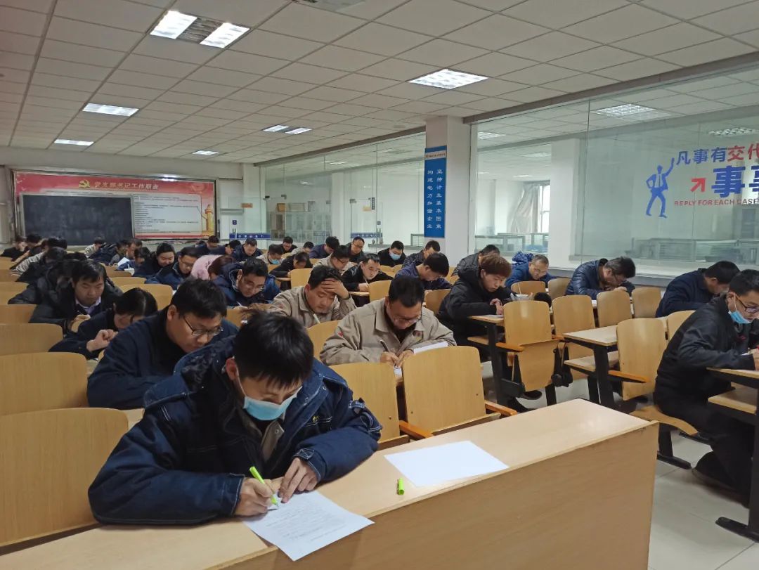 為檢驗運行人員的技能水平,運行部精心準備,提前制定方案,認真擬定考題。本次考評由閉卷筆試和實操測評兩種形式組成,考題編制緊貼運行崗位職責,切實聯系操作調整,涵蓋設備參數及原理、運行調整、異常分析及應對措施等內容,旨在以考試促進員工業務技能進一步提升。