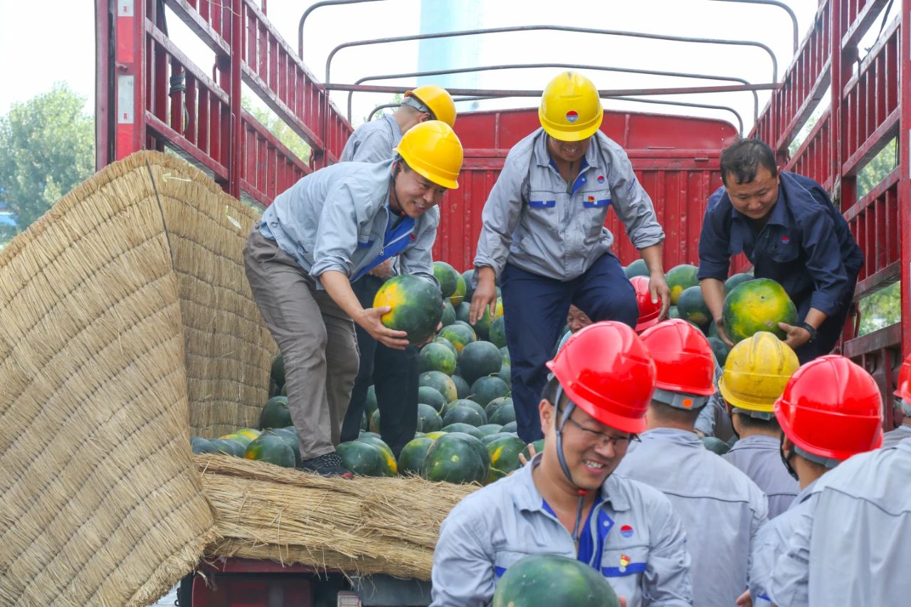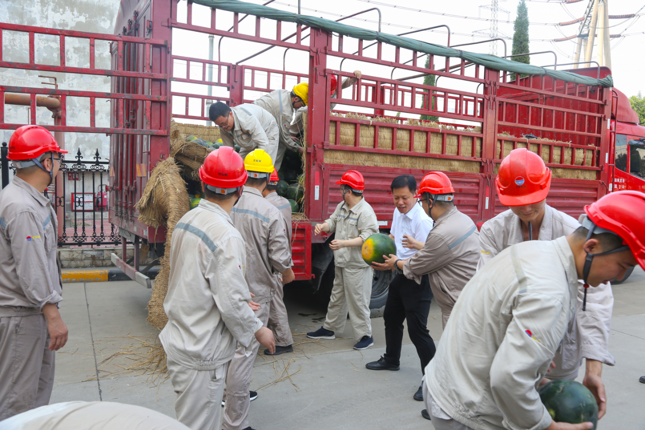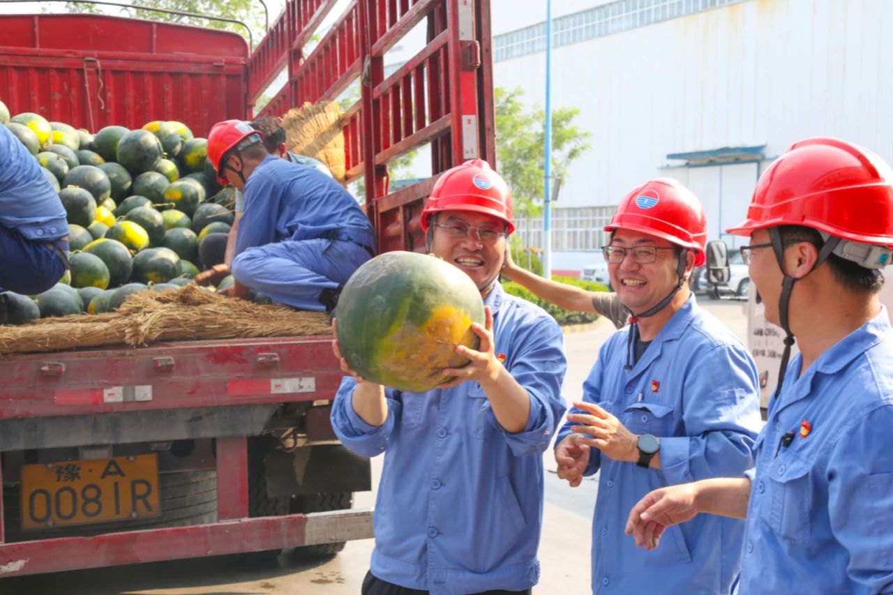 7月14日上午,受集團公司賀懷欽董事長委托,薄光利、周鐵柱、王力、楊新旭等集團公司領導及相關人員深入一線,給各單位送去了西瓜、礦泉水、防暑藥品等物資,并向高溫期間堅守崗位的廣大員工表示衷心的感謝和誠摯的問候。