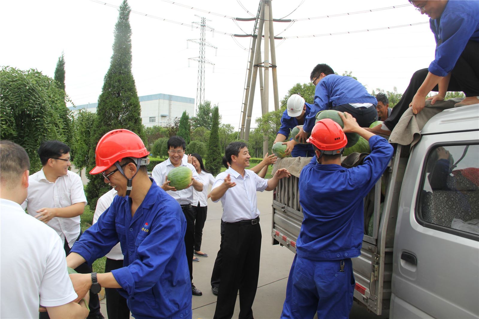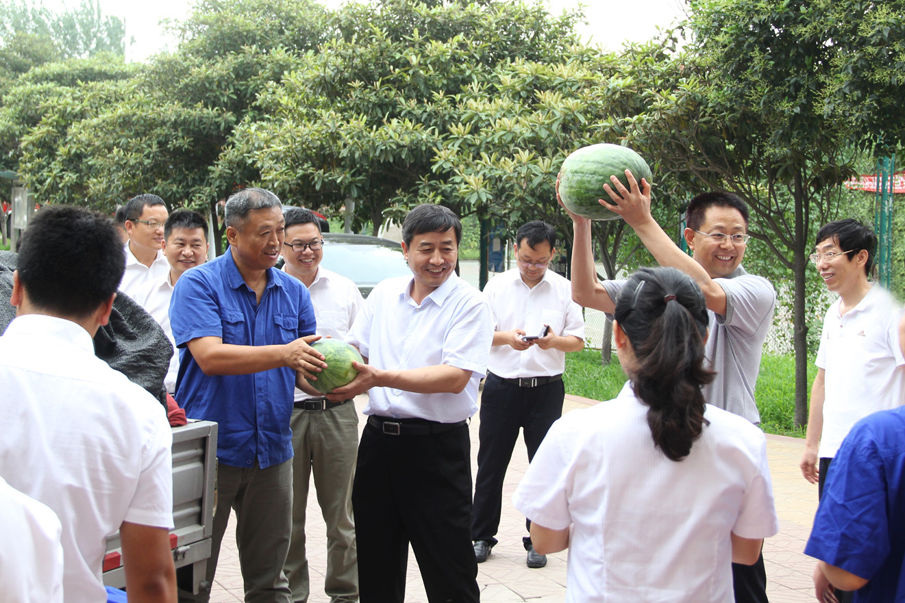 7月25日上午,受集團公司賀懷欽董事長委托,中孚實業總經理張松江帶隊,集團公司有關領導、機關各部門人員組成慰問組,先后到鋁業公司、銀湖鋁合金公司、博奧公司、電力公司、高精鋁公司、炭素公司、熱力公司等11個單位,帶去16000斤西瓜以及夏桑菊、藿香正氣水、風油精、清涼油等防暑降溫用品,看望、慰問奮戰在高溫崗位的一線員工,讓員工在酷暑中感受到舒心的涼意。