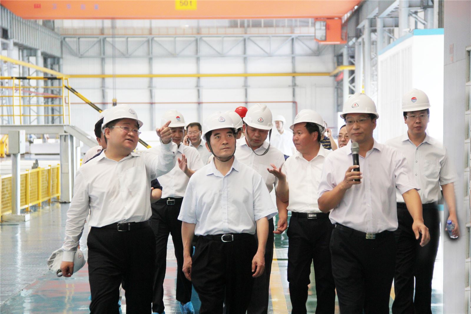調研組領導一行冒著炎炎烈日,深入生產現場,先后察看了中孚電力公司機組脫硫、脫硝、超低排放改造項目和高精鋁公司清潔能源利用情況,并詳細詢問了超低排放改造項目采用的技術及環保設施運行參數,深入了解了高精鋁公司高端設備、生產工藝、鋁精深加工產品及高端市場開發情況。