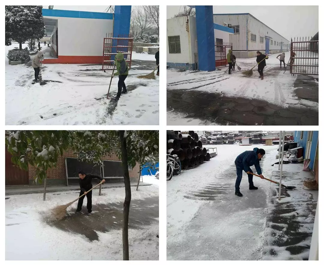 飄雪雖然美麗,卻給道路通行帶來了不小的阻礙。為盡快消除積雪給公司正常生產(chǎn)經(jīng)營和員工出行帶來的諸多不便,各單位及時(shí)組織員工清掃積雪,確保道路暢通。