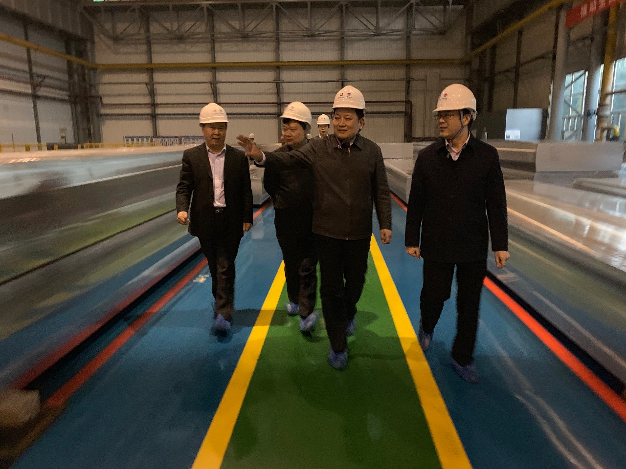 最后,袁市長深入公司轉型升級高精鋁項目生產現場,興致勃勃地觀看了熔鑄-熱軋-冷軋-精整全生產線,詳細詢問了裝備、生產工藝、產品用途和市場開發情況,對公司轉型升級取得的顯著成效給予高度贊賞。賀懷欽董事長表示,豫聯集團將堅定信心,搶抓機遇,不斷加大國內外高端市場開發力度,不斷增強企業核心競爭力,持續提高經濟效益,推動企業高質量發展。