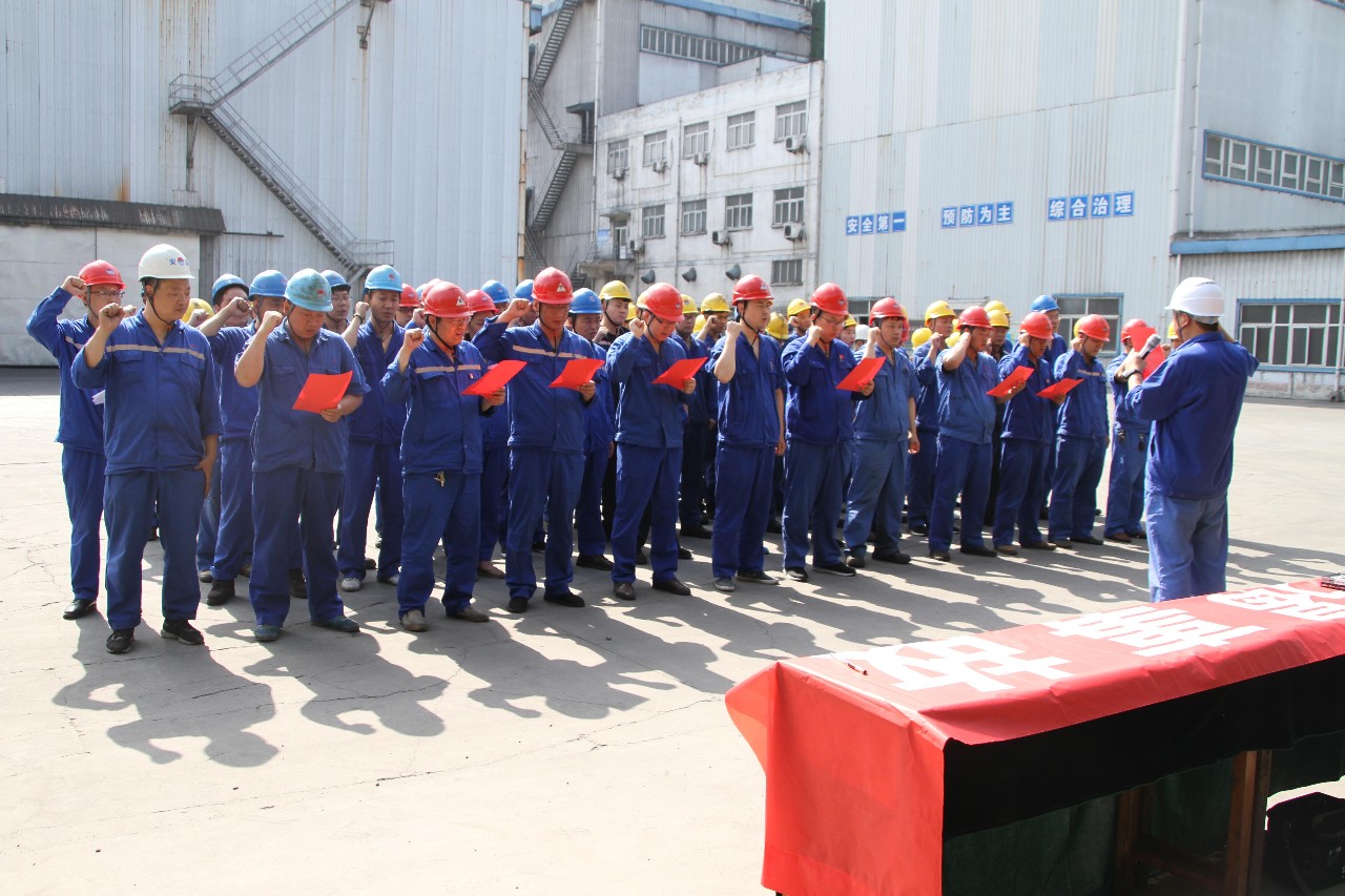 6月4日上午,中孚炭素公司舉行“安全生產月”活動啟動儀式,各部門負責人、區域安全員、員工代表共60余人依次在“防風險、除隱患、遏事故”的安全主題橫幅上鄭重簽名,并莊嚴地宣讀了安全誓詞。活動現場,公司生產主管經理翟紅衛強調:“安全重于泰山!強化員工安全意識,提高全員安全素質,是保證公司生產經營長期安全穩定的必要條件。希望通過安全活動的開展,深化全員對‘安全生產月’活動主題的認識,推動公司安全生產工作再上臺階,進一步營造‘人人懂安全、人人管安全’的良好氛圍,共同創造安全有序和諧的生產生活環境。”