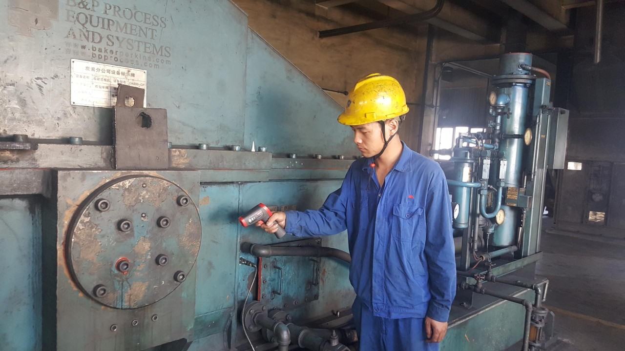 在中孚炭素公司成型車間崗位巡檢工手中,每個人都有三樣“神器”,那就是——機械聽診器、手持式紅外線測溫儀和便攜式激光測振儀。