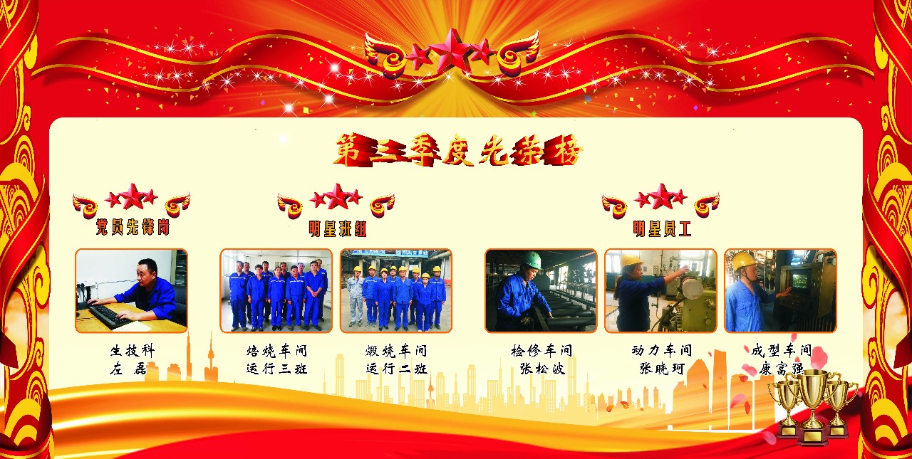 為展示優秀員工風采,形成人人創優、個個爭先的良好氛圍,近日,中孚炭素公司開展第三季度總結評比工作。經各車間推薦及公司評比,焙燒車間運行三班、煅燒車間運行二班榮獲“明星班組”稱號,張松波、張曉珂、康富強榮獲“明星員工”稱號,左磊榮獲“黨員先鋒崗”稱號。